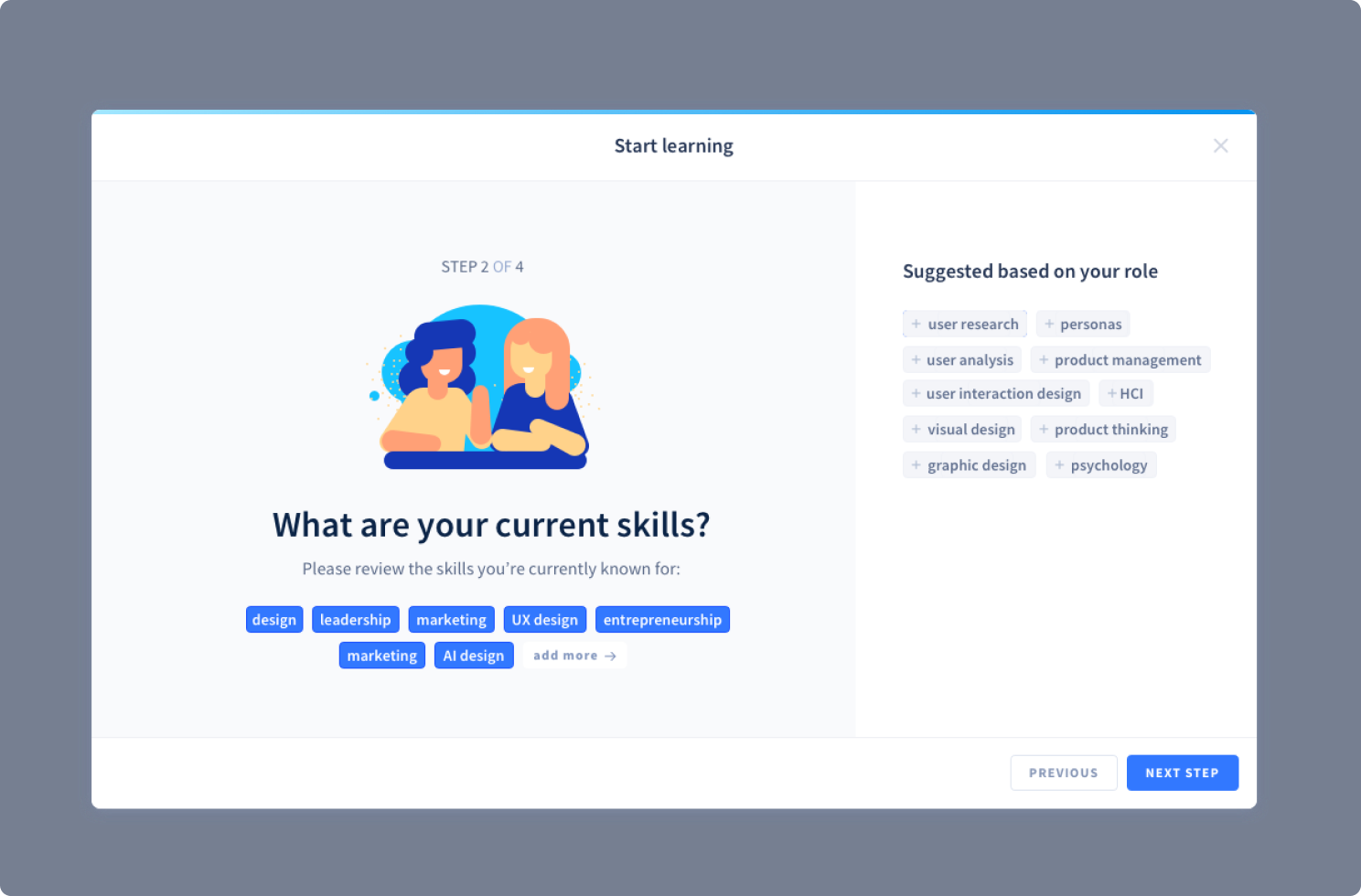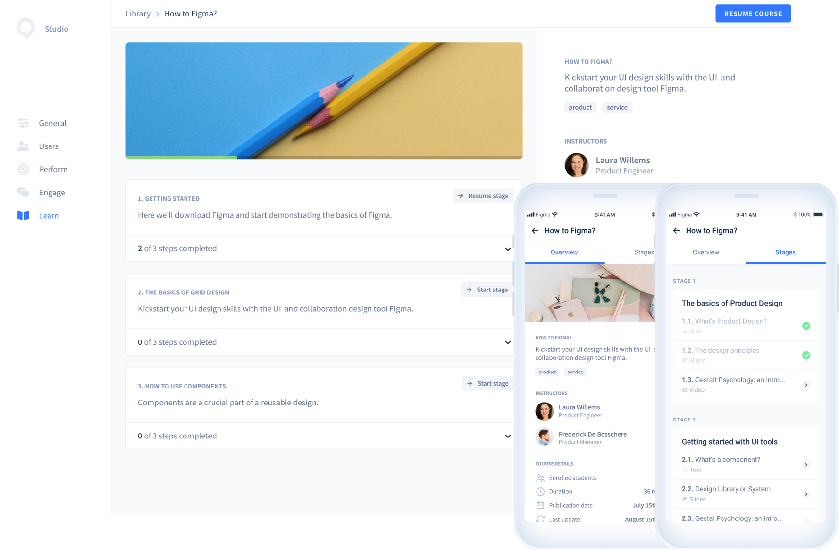 I designed course management features including external course approvals, personal libraries and the onboarding flow for new users.
