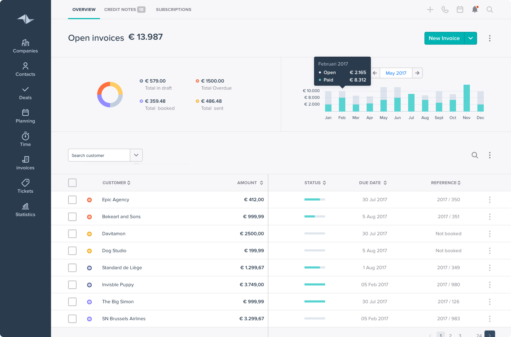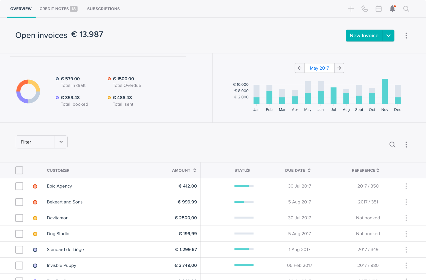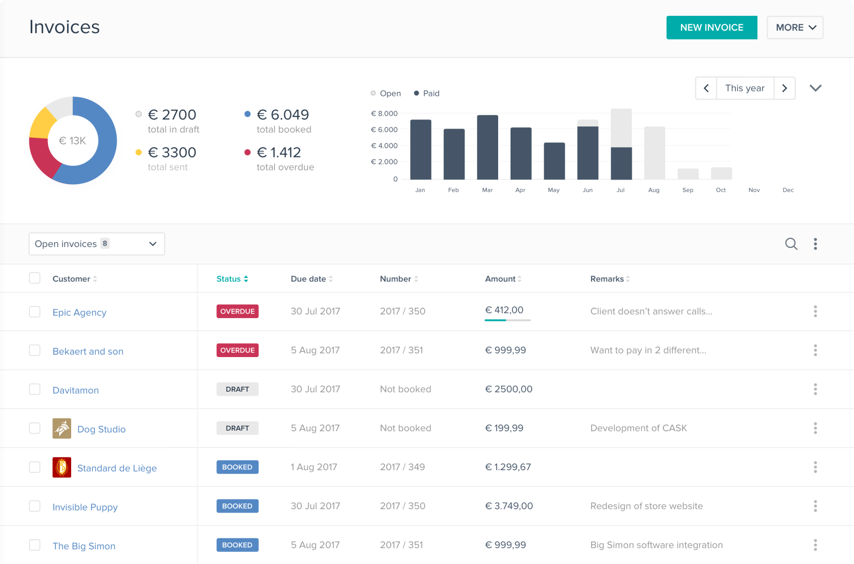 First iteration of the invoicing overview and the new visual direction.