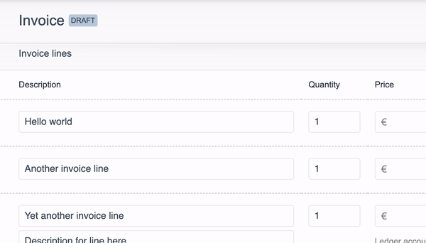 Some invoice line micro interactions that I designed directly in code (React).